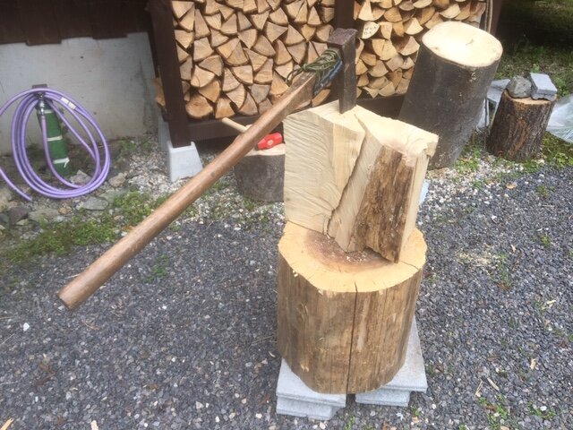 こうなると一度はやってみたいのが男のロマン、薪割りですよね~