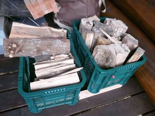 いろんな樹種と大きさの薪が入ってて楽しいですね~