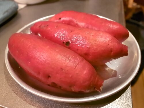 奥さん「このビールに合うアテをいろいろ試してるんですけど、サツマイモが合うかも(笑)」
