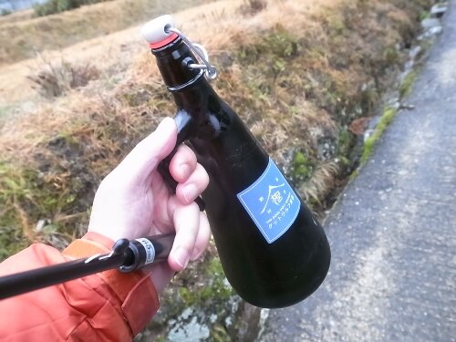 雨降りの中、傘と瓶を持ちつつスマホ撮影。。。