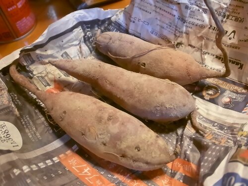 ビールとお芋を持ち帰りましてさっそく焼きいもの準備です