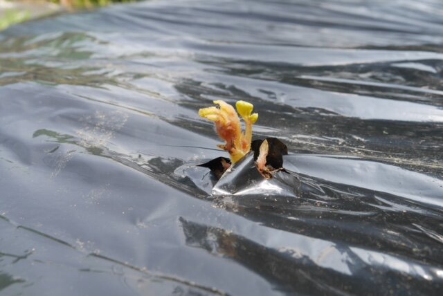 2022年04月29日 じゃがいもの芽が出ました! じゃがいもを植え付けて2週間畑の周囲にも葉っぱの大きな雑草がたくさん出てきました出始めの茎が柔らかいうちに刈ってしまいましょう草払い機は電動ですがパワーは無いしバッテリーはすぐになくなるし。。。エンジン式が欲しいです今年は種芋の植え付けと同時に黒マルチを被せてみましたが芽が出てきたときにどうやって見つけるのでしょう西側の畝2列はビニールが盛り上がってましたのでハサミで穴をあけると芽が出てました日が当たってないので白っぽいですねぇ掌でマルチをそっと触って芽を探しましたが。。。他に方法がありそうですね(笑)にほんブログ村にほんブログ村