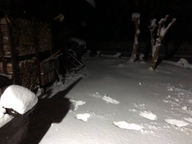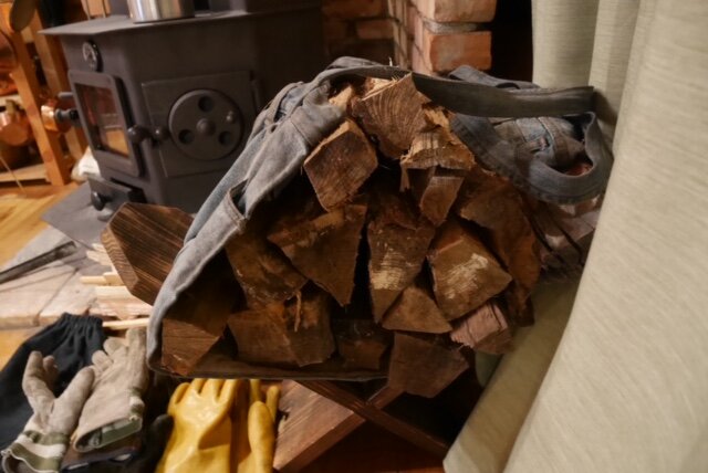 軒下の広葉樹薪を取りに行くのも一苦労です