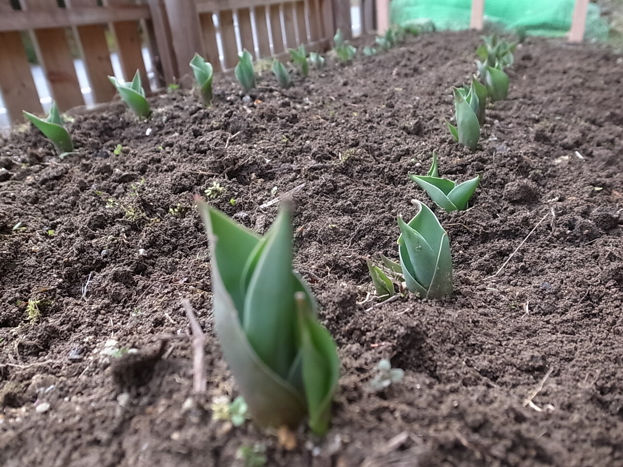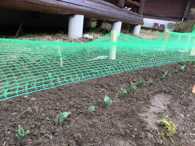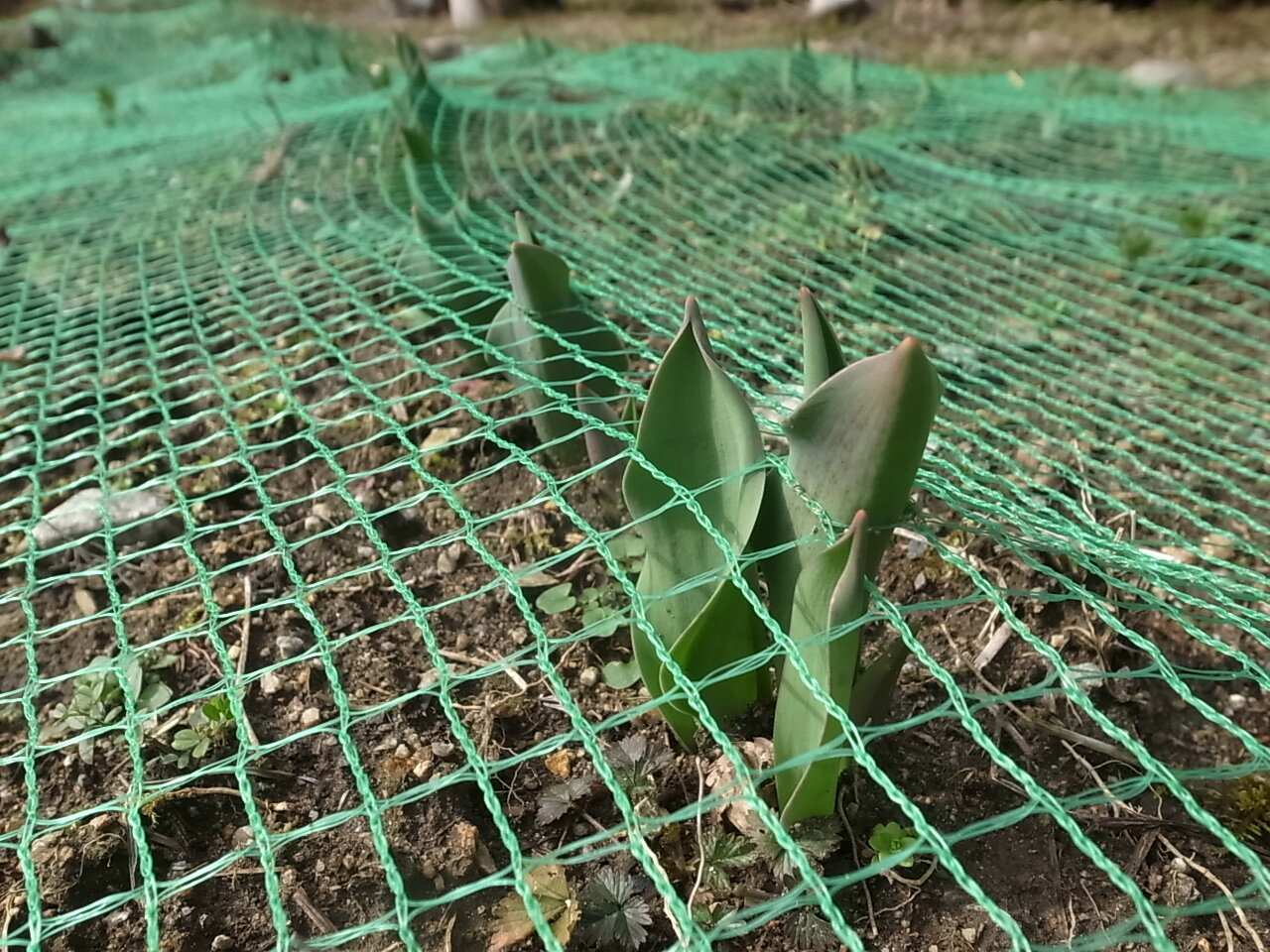 2020年03月07日 チューリップ 令和2年3月1日チューリップの芽が育ってきました緑のネットは、鹿よけ(のつもり)です昨秋に足跡があったので。。。ネットを外し、雑草をチマチマと取り除きましたなかなかの重労働ですね90個ほどの球根を植えましたが鹿の食害が気になりますね。。。なので、やっぱりネットを被せておきましょうまぁ、気休めですが(笑)横の隙間から食べられそう。。。でも、新たに費用をかけて食べられちゃったら悲しいしねぇ暖冬のせいかこのところ鹿の姿をみかけませんねG・Wあたりにチューリップが満開になることを願ってますにほんブログ村にほんブログ村